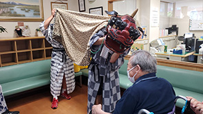 7/22(土)龍ヶ崎市八坂神社祇園祭が開催され、奉納される獅子舞が龍ヶ岡にも来園されました。利用者様も記念写真を撮られ楽しいひと時を過ごされました。