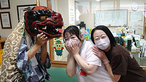| 獅子舞と職員 |