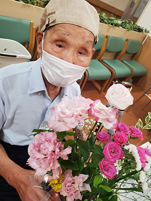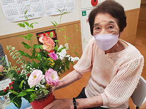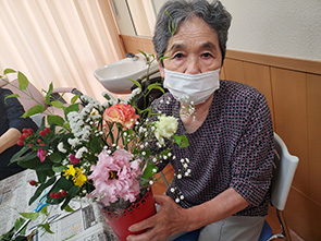 デイサービスではレクリエーションの時間でフラワーアレンジメントクラブを 実施しました。