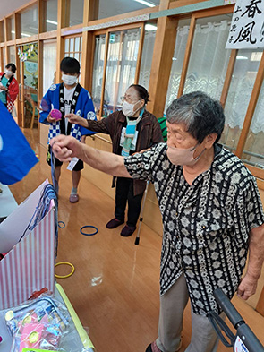 毎年恒例行事として実施していますが、今年はかき氷、くじ引き(景品つき)輪投げ、ヨーヨーつり、職員による「よさこいソーラン」などの出し物とたくさんの内容でした。