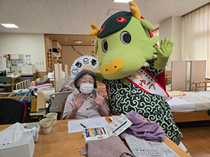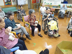 デイルームに姿を見せると、ご利用者様からは「かわいい!」と大歓声が上がり、大盛り上がり。