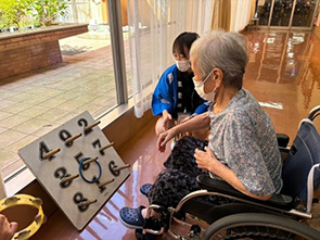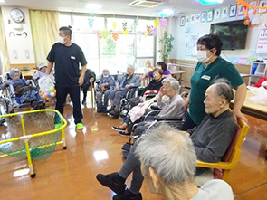 特別養護老人ホームでは、日々の個別機能訓練に加え、入所者様の健康維持や楽しみのために、定期的にレクリエーションを開催しています。