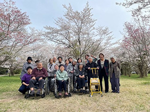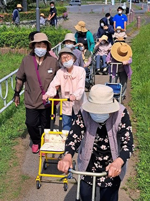 デイサービスでは外出行事で龍ヶ崎市や近隣市町村の公園でのお散歩を企画しお出掛けしています。青空の下、新鮮な空気を感じながら歩くことで、ご利用者様の表情も自然とほころび、笑顔があふれます。心地よい風や季節の移ろいを楽しみながら、気分もリフレッシュ!これからも、外出行事を通じて皆さまの笑顔を増やせるよう、楽しい企画を考えてまいります。