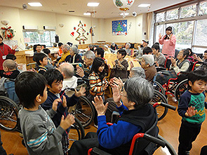 「幸せなら手をたたこう」「肩たたき」を唄いながら触れ合った。
