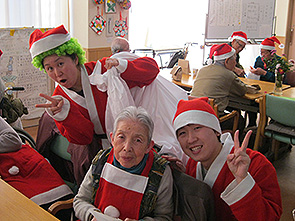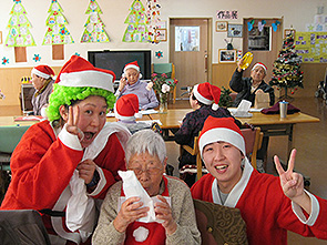 ③恒例のクリスマス会…職員がサンタの服装でデイ利用者38名にプレゼントを差し上げた。