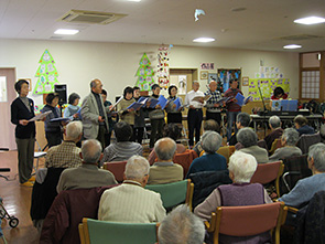 ③龍ケ崎市内で活躍されているコーラスグループ「丘のハーモニー」15名が訪問した。