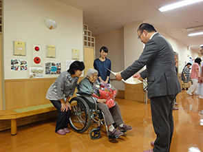 | ③ | 龍ケ岡には、現在100歳を超えた方が4名いらっしゃいますが、今回3名の方が加わり、7名となりました。これからも、入所者様には元気に長生きしていただきたいと願っています。ちなみに龍ケ岡の入所者の平均年齢は85.5歳となっています。 |