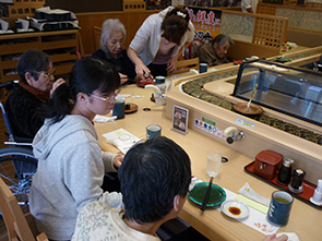 | ② | 回転寿司やてんぷら屋さんなど、お好みのメニューを選んでおいしい食事に舌鼓を打っていました。 |