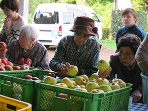 | ③ | 毎年恒例の行事で、牛久市の長沼りんご園で、リンゴ狩りの他、試食をしたりお土産のりんごを買ったりと楽しい1日を過ごしました。 |