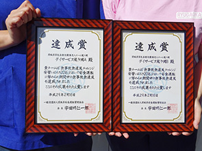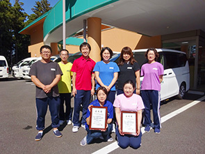| ② | 茨城県安全運転管理者協議会で主催した『無事故無違反チャレンジ安管茨城2016』に昨年に引き続き、龍ケ岡デイサービスとしてA・B2チームが参加しました。1年間グループ全員が無事故無違反を目指すもので、龍ケ岡デイサービス2チームは見事達成することができ表彰状を授与されました。 これからも、ご利用者の皆様が安心してサービスが利用できるよう、“安全・安心の運転“を心がけていきます! |