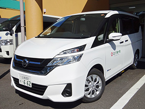 | ① | 龍ケ岡では、現在6台のリフト付き送迎車が稼働していますが、一番古くなった『セレナ』をこのたび買替しました。ピカピカの送迎車はこの9月から稼働しています。送迎に当たる職員一同、今後も安全運転をモットーに頑張ります。 |