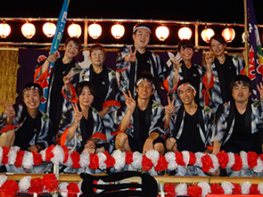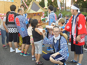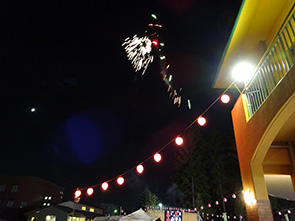 | ③ | ボランティアとして参加いただいた「新川囃子 新城組」のお囃子のほか、職員による「花笠踊り」「よさこいソーラン」などの出し物、さらに龍ケ岡神輿、打ち上げ花火と盛りだくさんの内容でした。 |