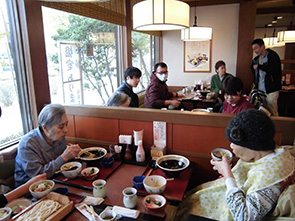 | ③ | 帰りは地元の「食事処」で各自好物のごちそうを食べて、皆さん大満足でした。 |