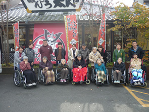 | 商店街の沿道を散策! | お食事処で記念撮影 | |